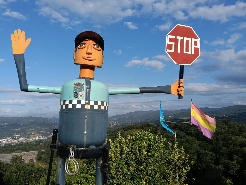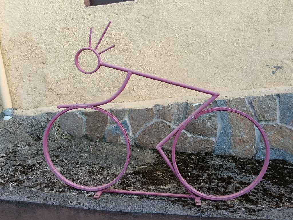 Después del tramo más exigente nos acercamos al bonito pueblo de Cuturraso para disfrutar de las numerosísimas estatuas y adornos con los que dos vecinos están engalanando desde hace tiempo el pueblo (alusiones a la bicicleta incluidas). Paramos a comer aquí en Cuturrasu donde hay un único bar. En tiempos de mayor población eran afamadas sus fiestas, aún se recuerdan las actuaciones de Manolo Escobar, Karina, Luis Aguillé, Georgie Dan, La década Prodigiosa y María del Monte entre otros.